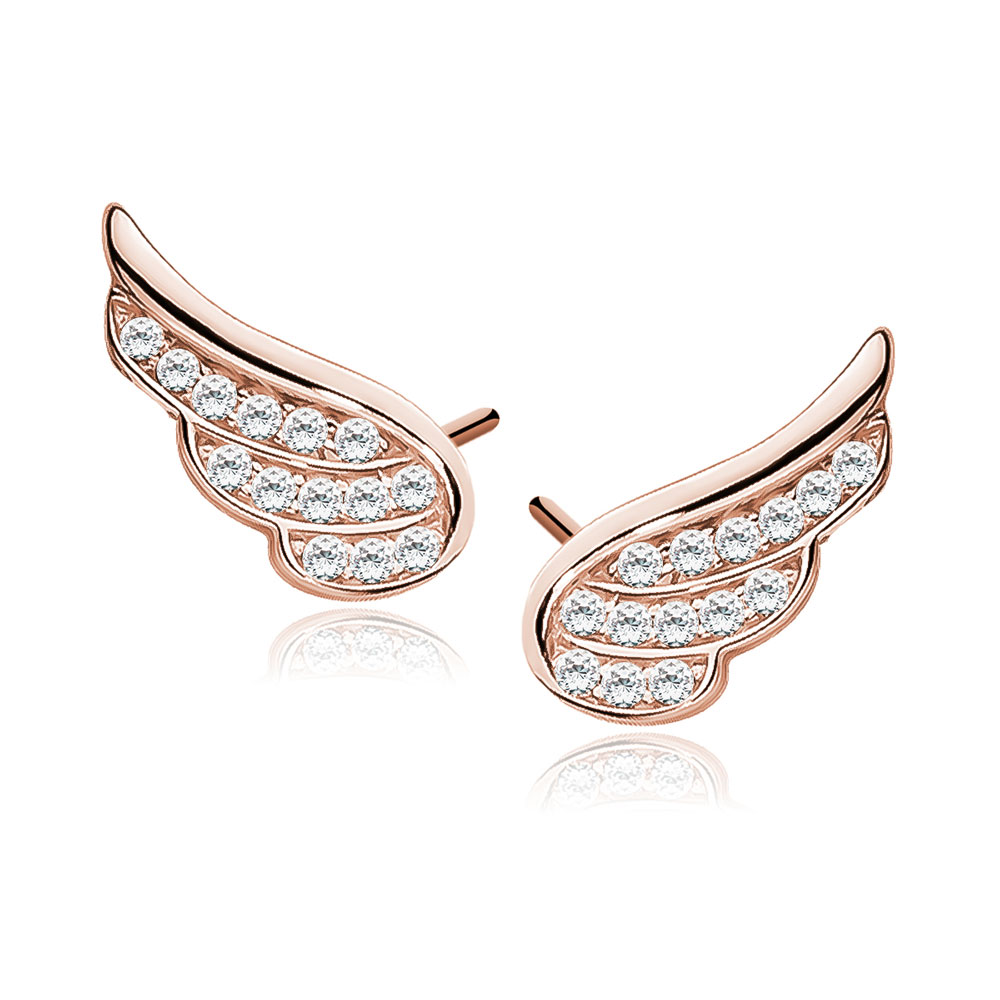 Cercei argint placat cu aur roz aripi cu pietre si prindere cu surub