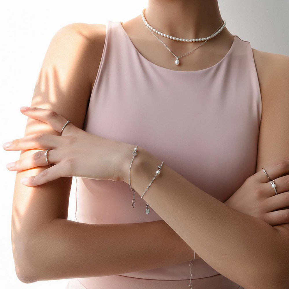 Bratara perla naturala si cerc cu pietre pe lantisor argint