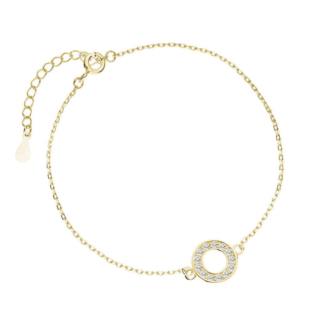 Bratara argint placata cu aur galben realizata din lantisor si cerc cu pietre