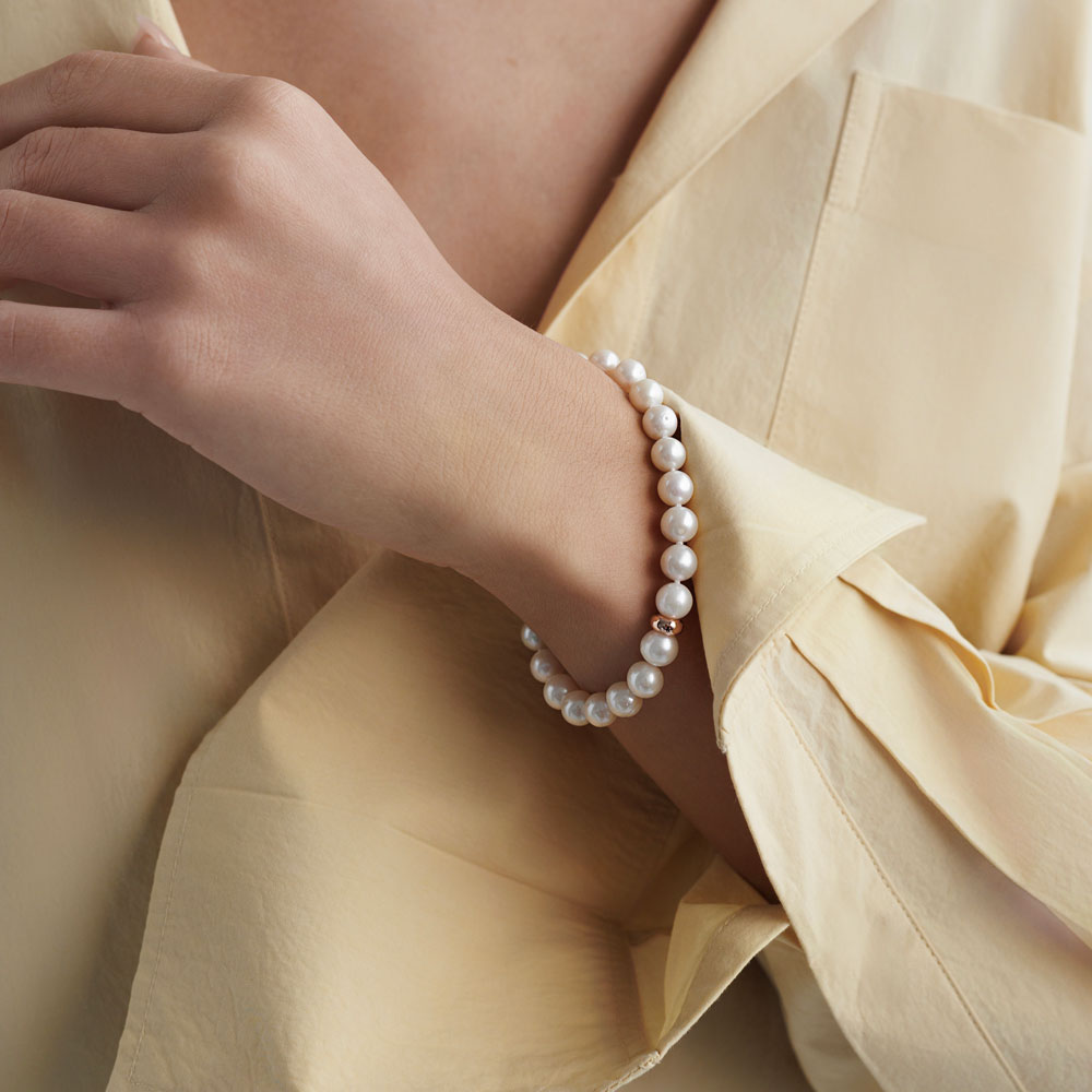 Bratara perle naturale albe cu argint placat cu aur roz