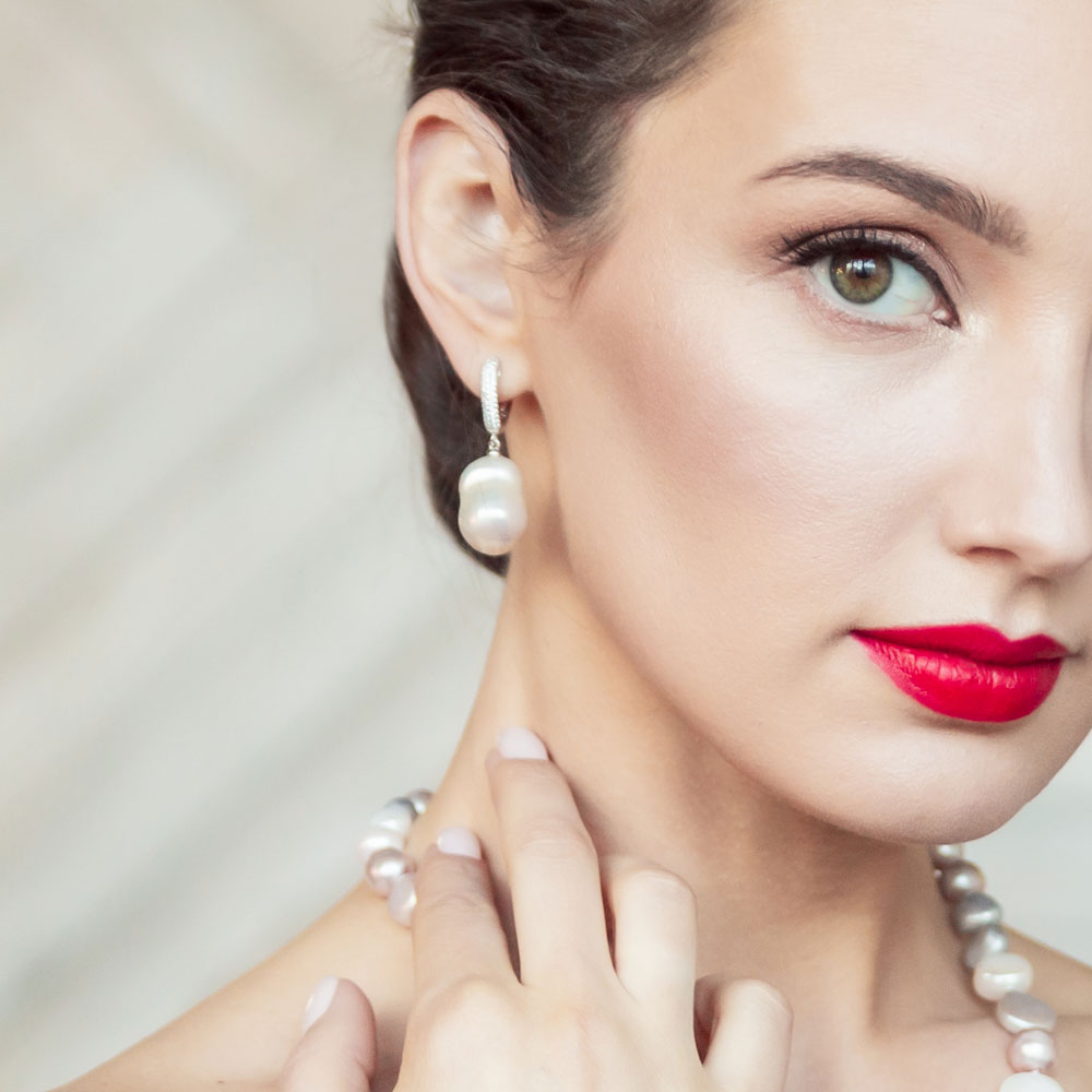 Cercei cu perle naturale albe si cristale, realizati din argint cu tortite