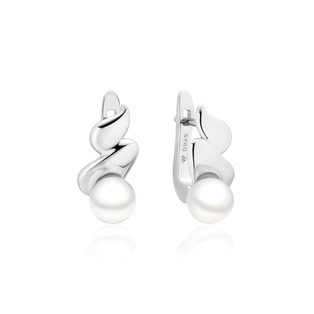 Cercei cu perle naturale albe, realizati din argint cu tortite
