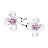 Cercei argint floare cu piatra roz si prindere cu surub