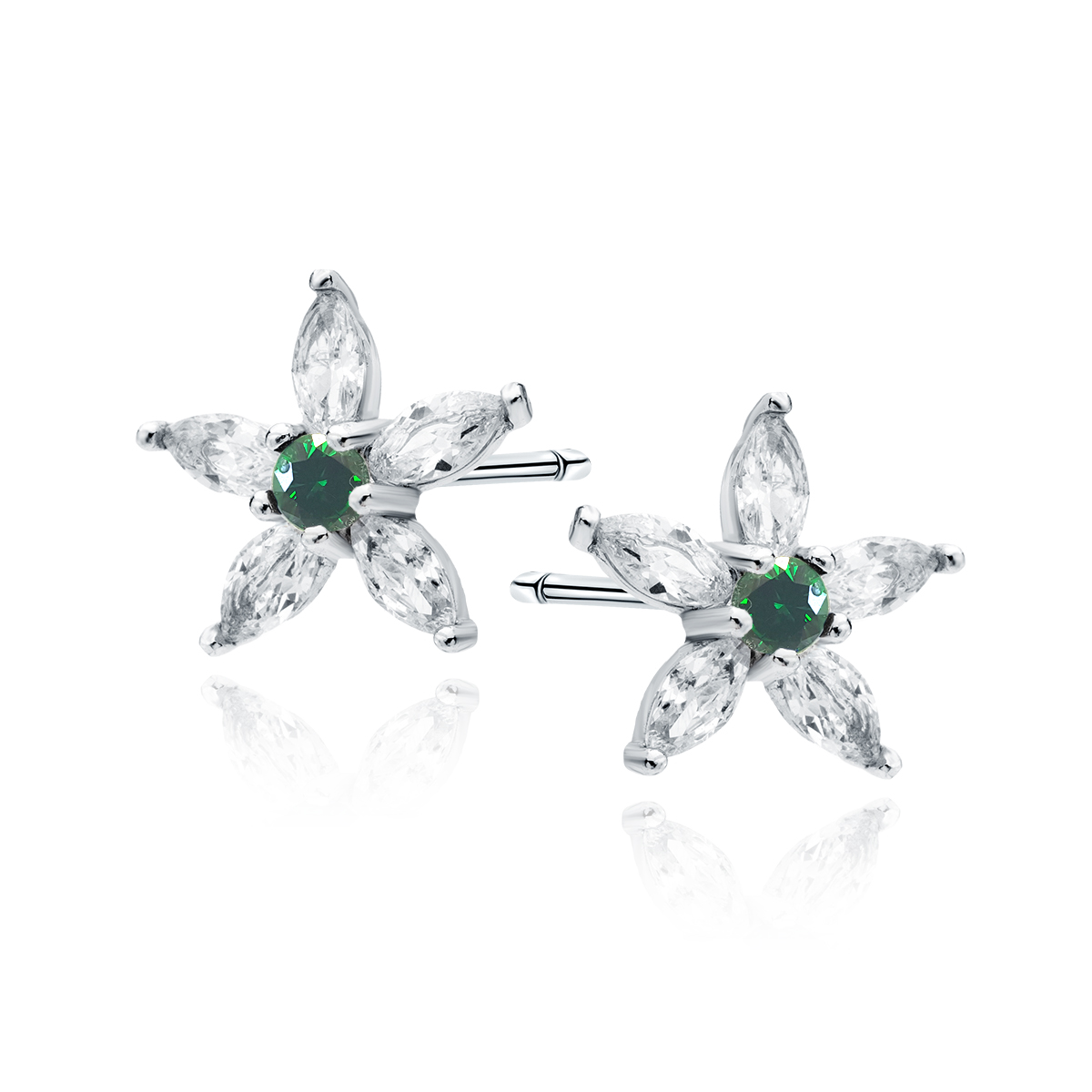 Cercei argint floare cu piatra verde DiAmanti Z1938ER_LG-DIA