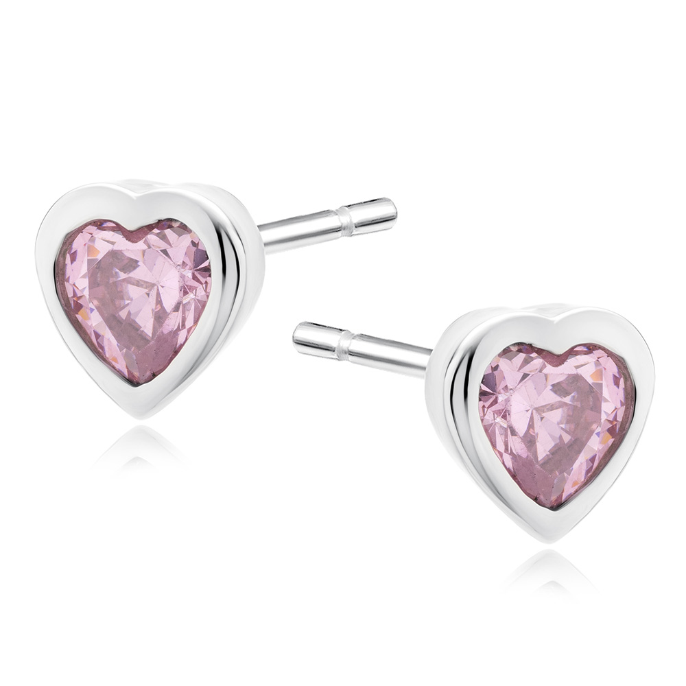 Cercei argint inima cu piatra roz si prindere cu surub