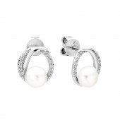 Cercei perle naturale albe de argint cu cristale DiAmanti SK22112E-W-G