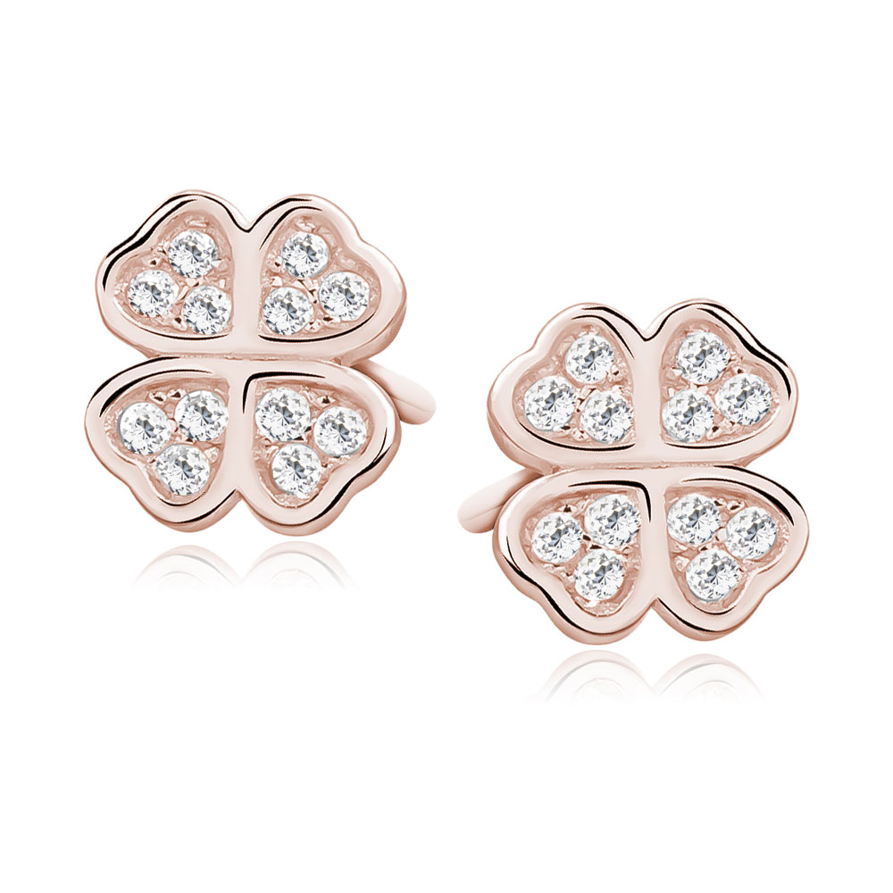 Cercei argint placati cu aur roz trifoi cu 4 foi cu pietre DiAmanti Z1074E_RG-DIA