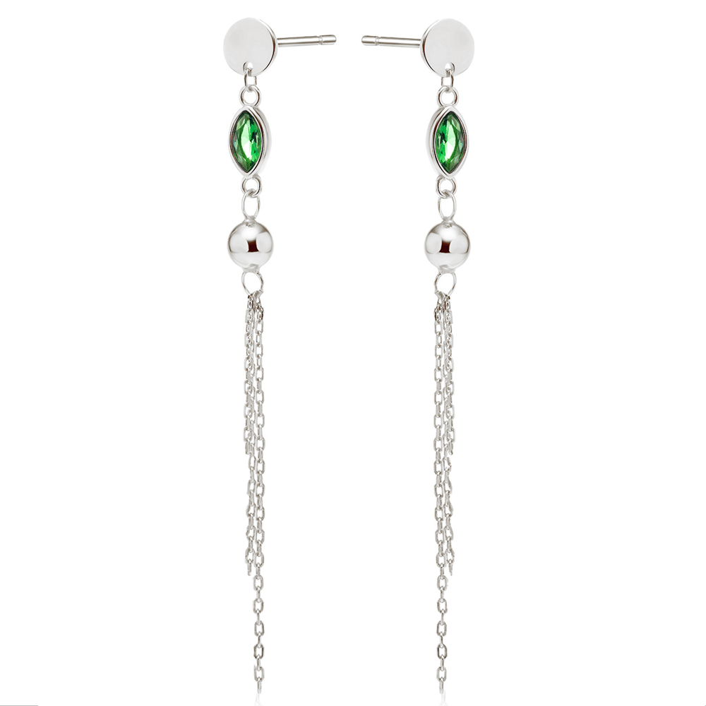 Cercei lungi argint cu pietre verzi si lantisoare DiAmanti Z2040ER_EM-DIA