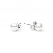 Cercei cu perla naturala alba 6 mm si argint, prindere cu surub