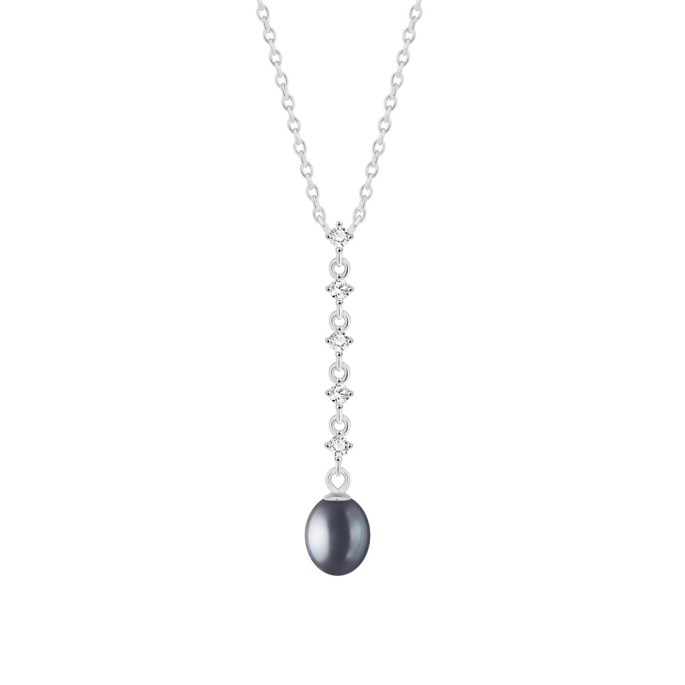 Colier argint cu perla naturala neagra cu reflexii si pietre