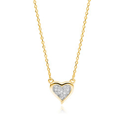 Colier argint placat cu aur galben realizat din lantisor si pandantiv inima cu pietre zirconiu