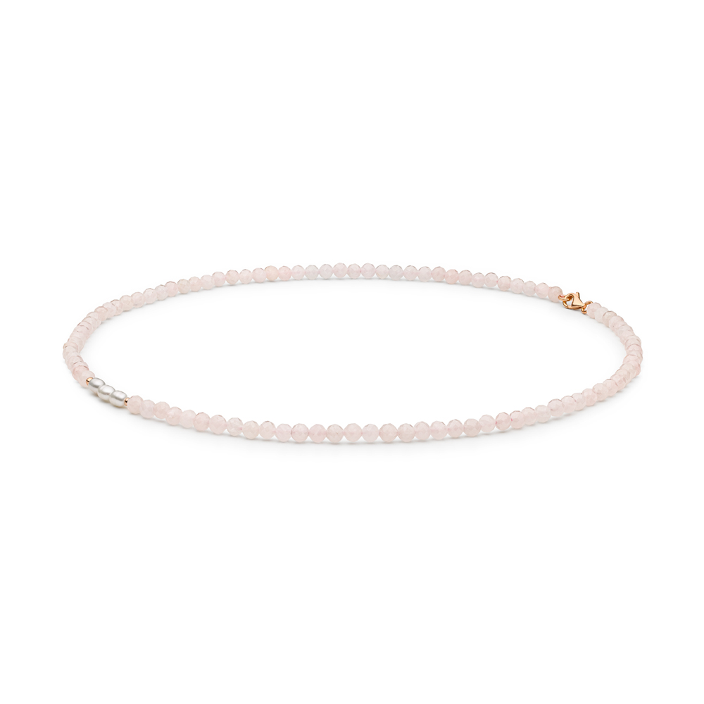 Colier din cuart roz si perle naturale cu argint placat cu aur roz DiAmanti 254-102-G