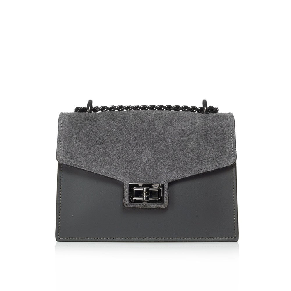 • Geanta dama de umar, din piele naturala fina si piele intoarsa camosci, culoare gri inchis