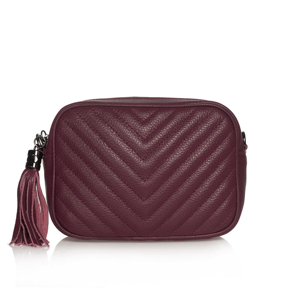 • Geanta dama de umar, din piele naturala cu aspect matlasat, culoare bordo