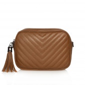 • Geanta dama de umar, din piele naturala cu aspect matlasat, culoare maro deschis
