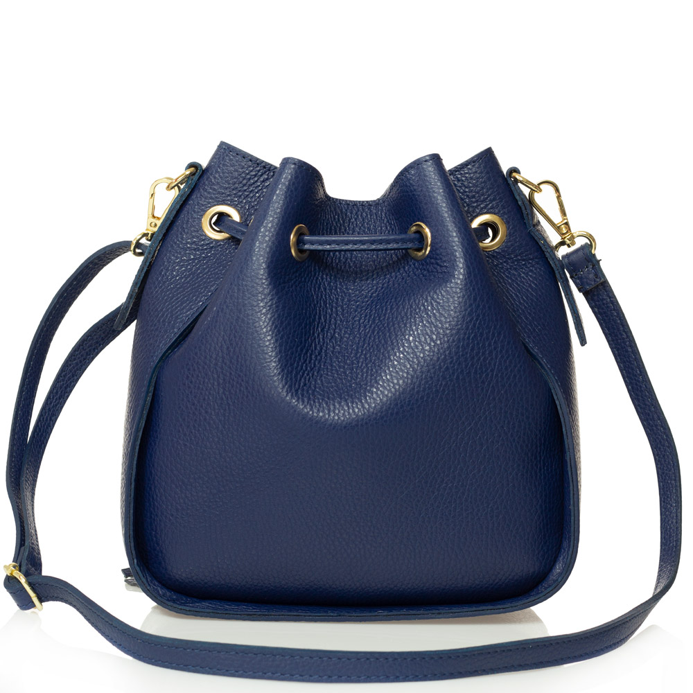 Geanta dama de umar din piele naturala, stil bucket, DiAmanti Ottavia Blu Scuro