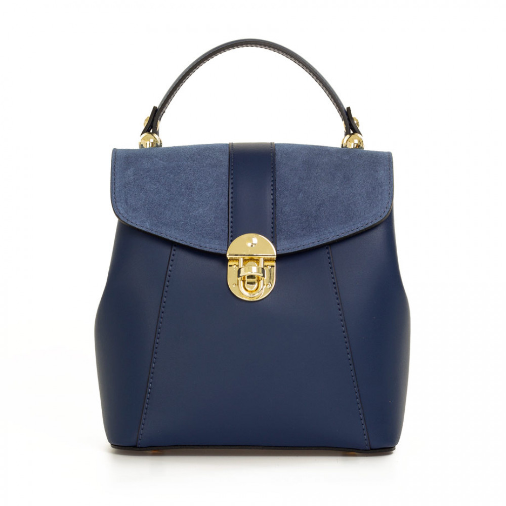 • Rucsac din piele naturala, tip geanta dama, culoare albastru inchis