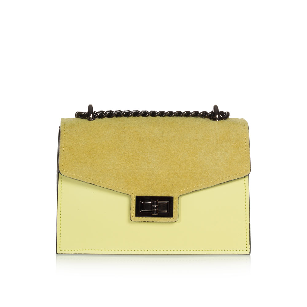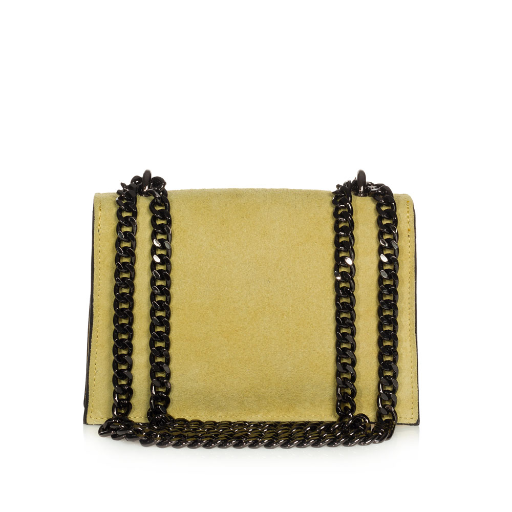 • Geanta dama de umar, din piele naturala fina si piele intoarsa camosci, culoare galben
