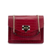 Poșetă damă, din piele naturală lăcuită cu textură croco, culoare roșu închis