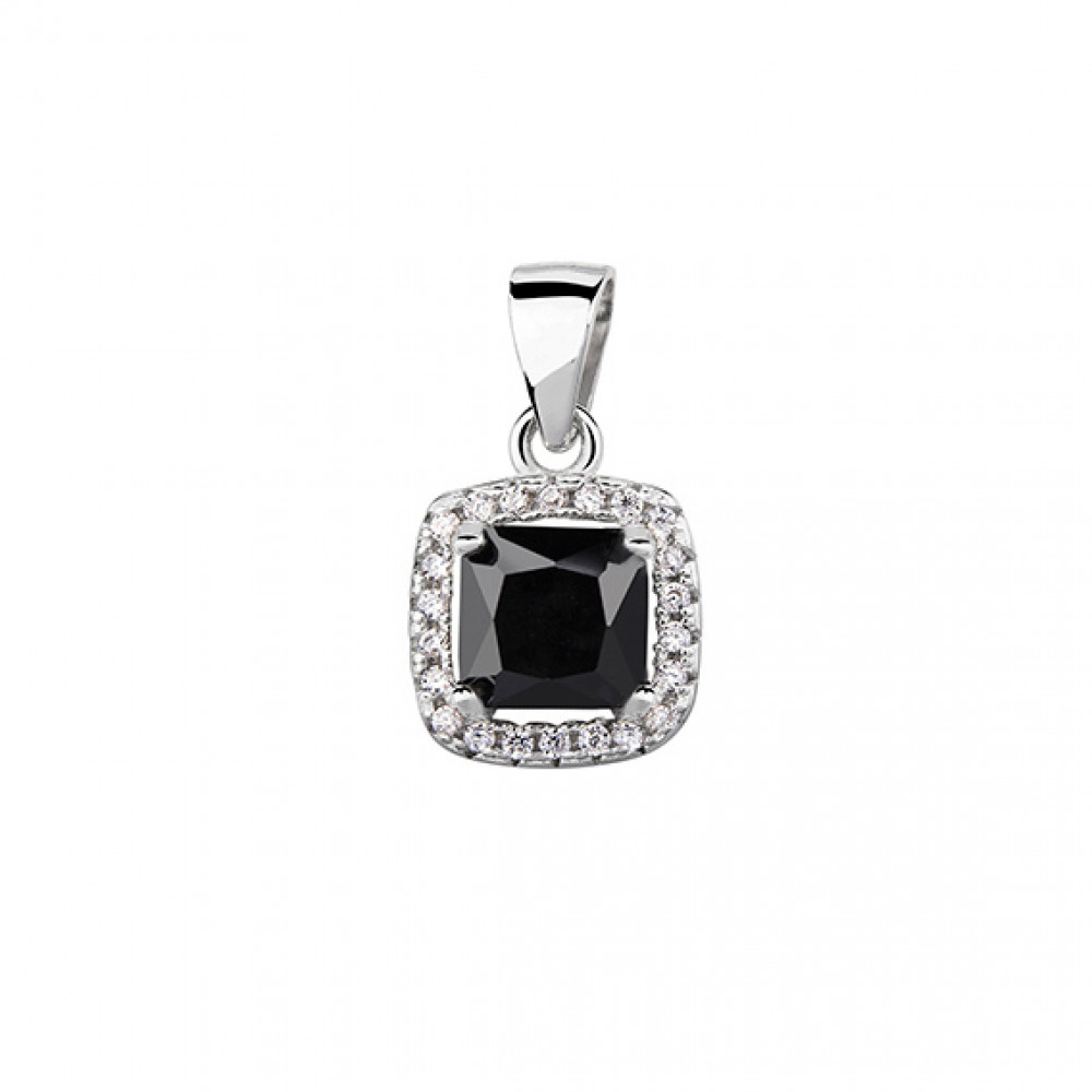 Pandantiv argint cu piatra patrata neagra DiAmanti Z0782C_B-DIA