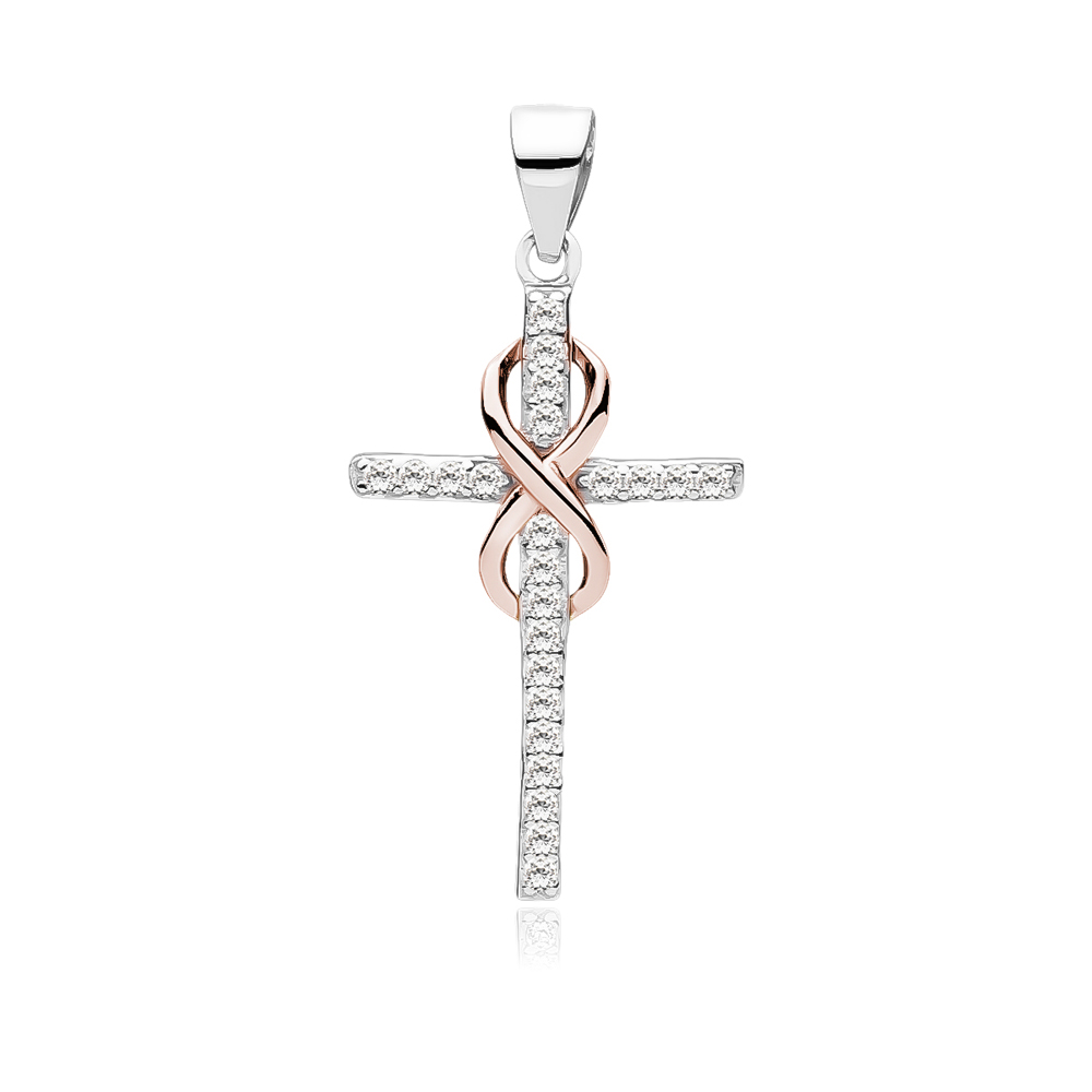 Cruciulita argint cu infinit placat cu aur roz si pietre