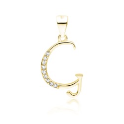 Pandantiv placat cu aur galben initiala litera R din argint cu pietre DiAmanti LZ0002G_R-DIA