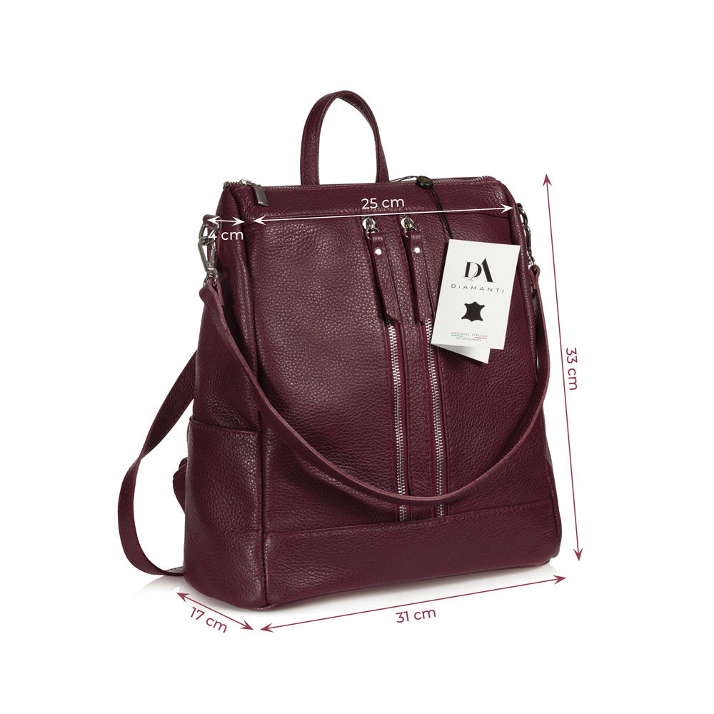 Rucsac tip geanta de dama, din piele naturala, DiAmanti Cerullo Bordo