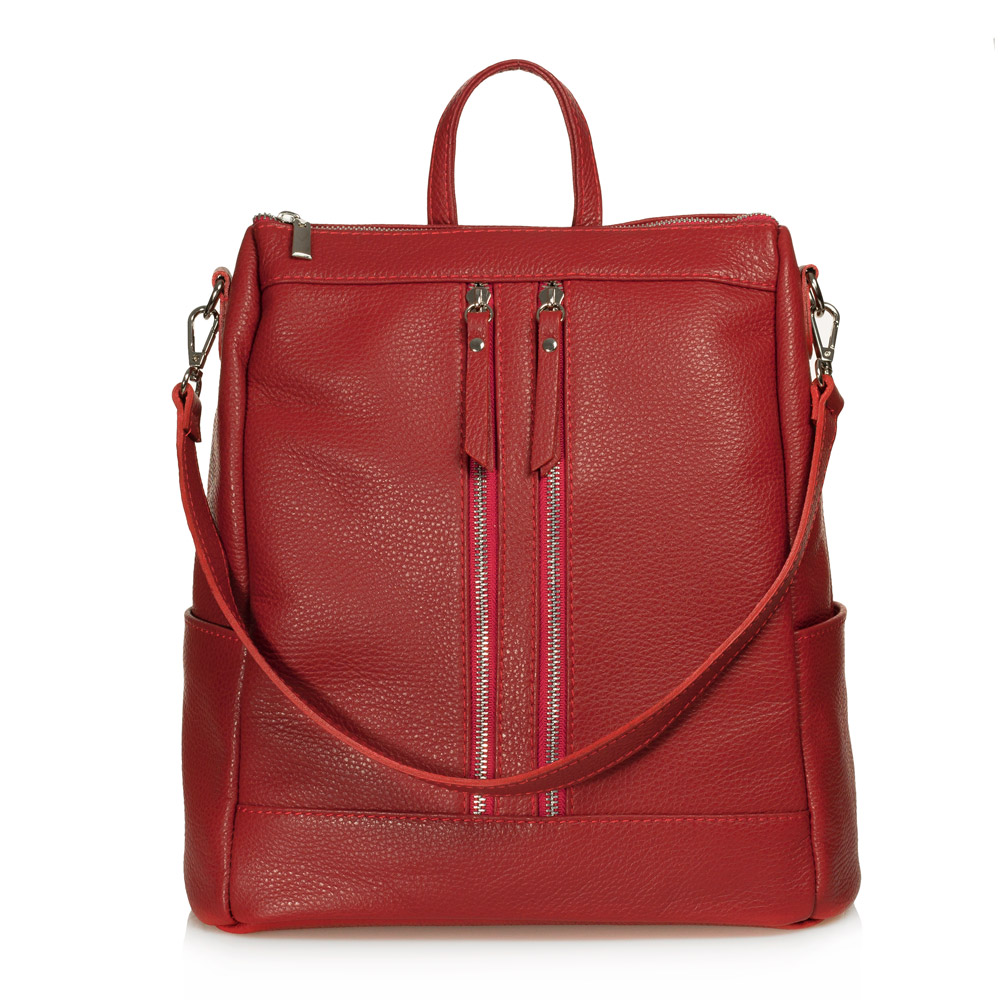 Rucsac tip geanta de dama, din piele naturala, DiAmanti Cerullo Rosso