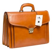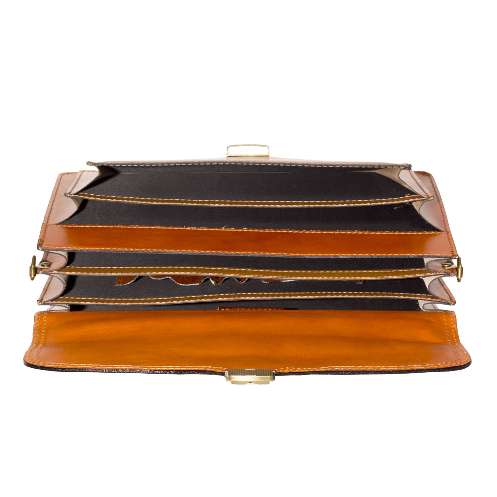 • Servieta din piele naturala, culoare maro coniac deschis