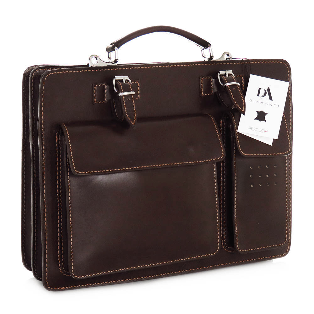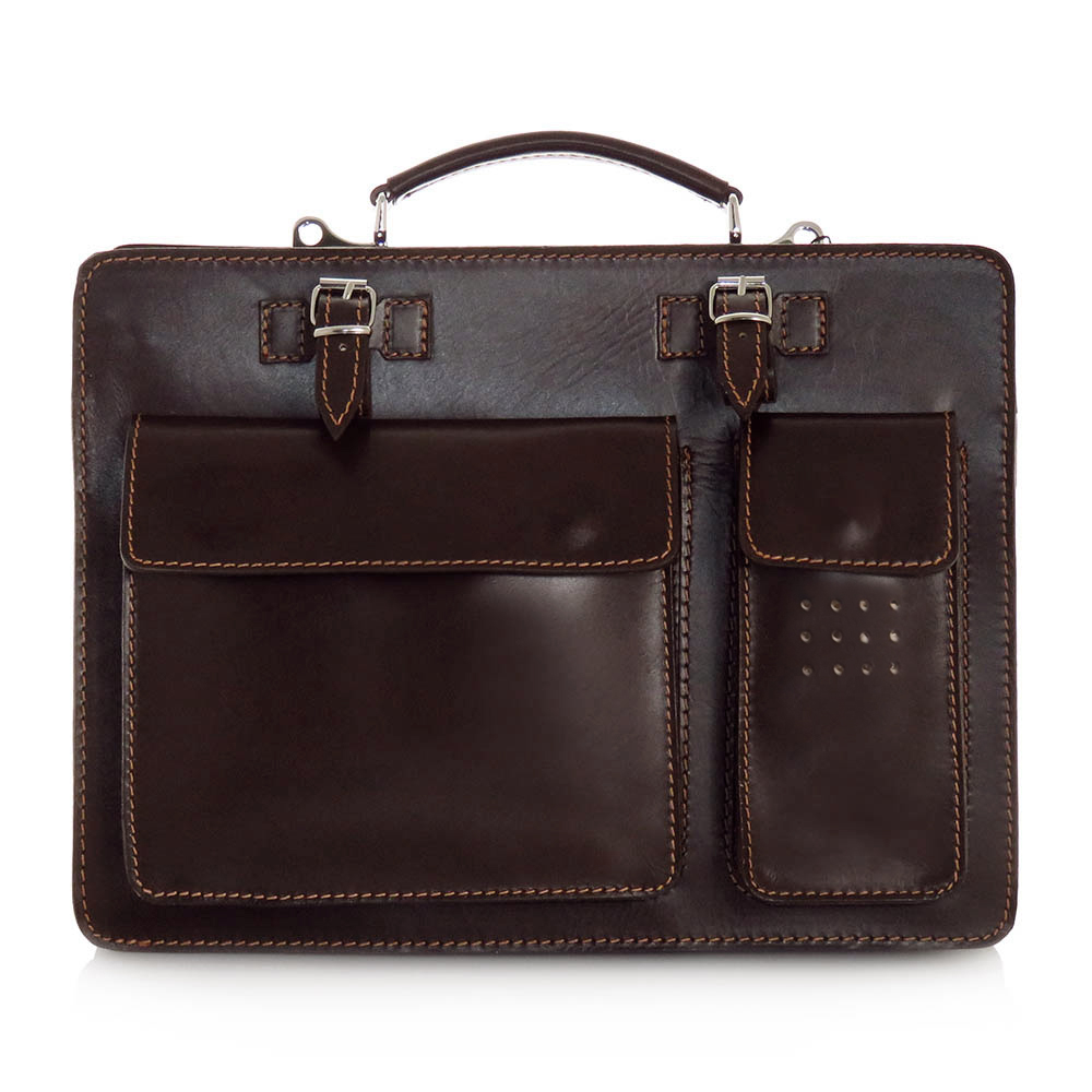 • Servieta din piele naturala, culoare maro inchis